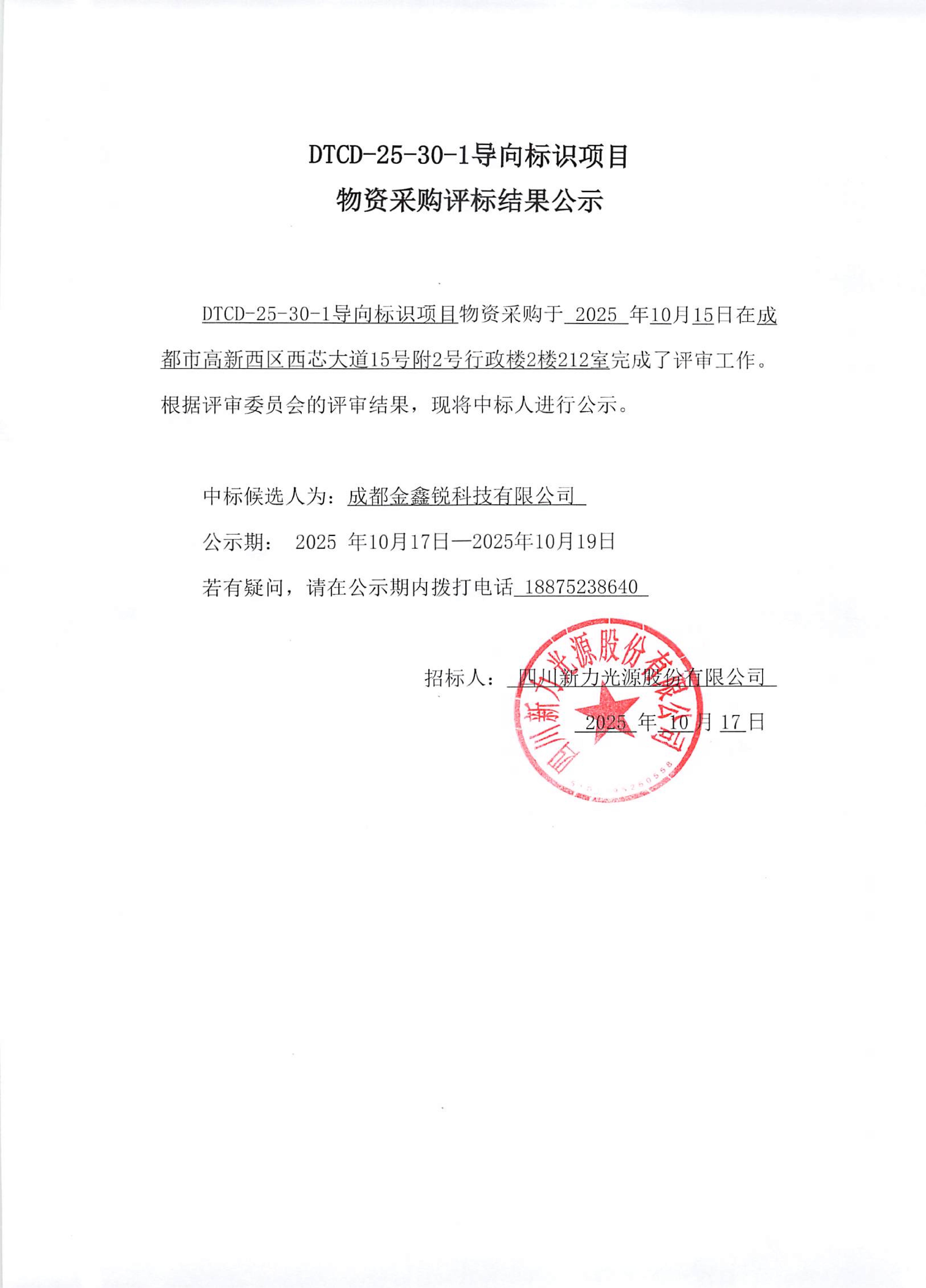 上一条:DTCD-25-30-1导向标识安装劳务分包评标结果公示