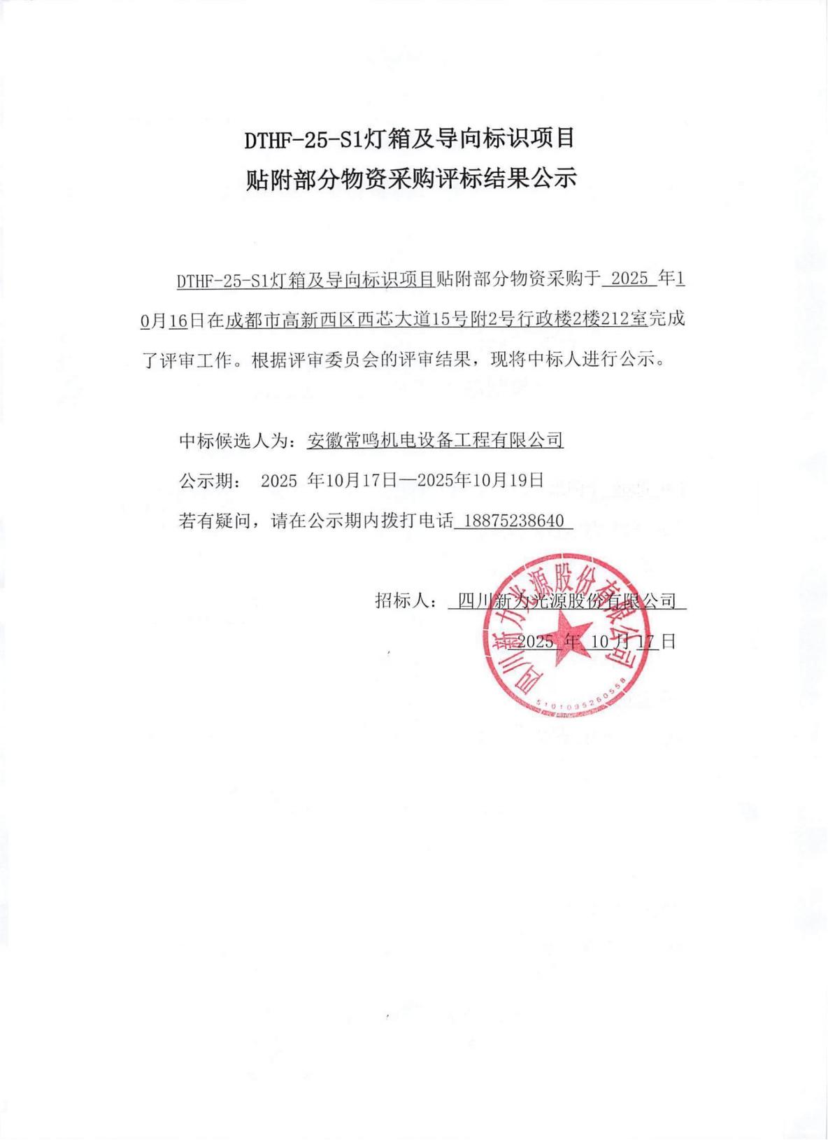 DTHF-25-S1灯箱及导向标识项目贴附部分物资采购评标结果公示