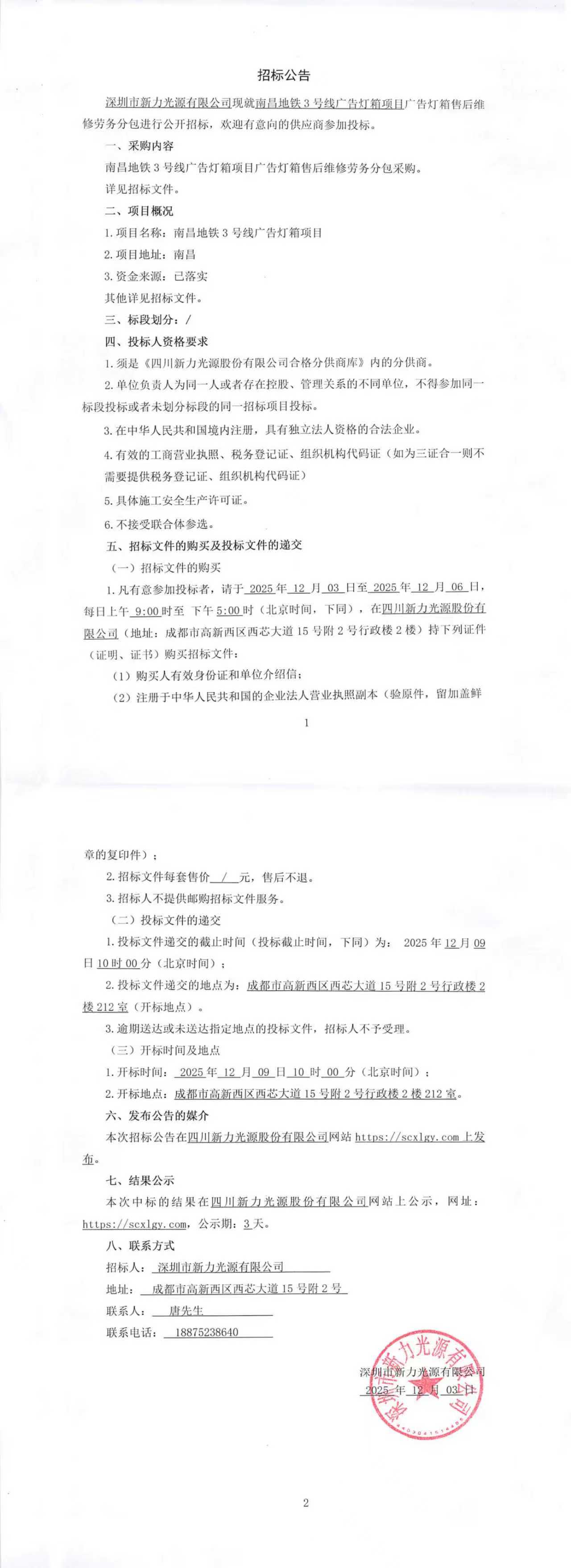 上一条:南昌地铁3号线广告灯箱项目广告灯箱维修劳务分包评标结果公示